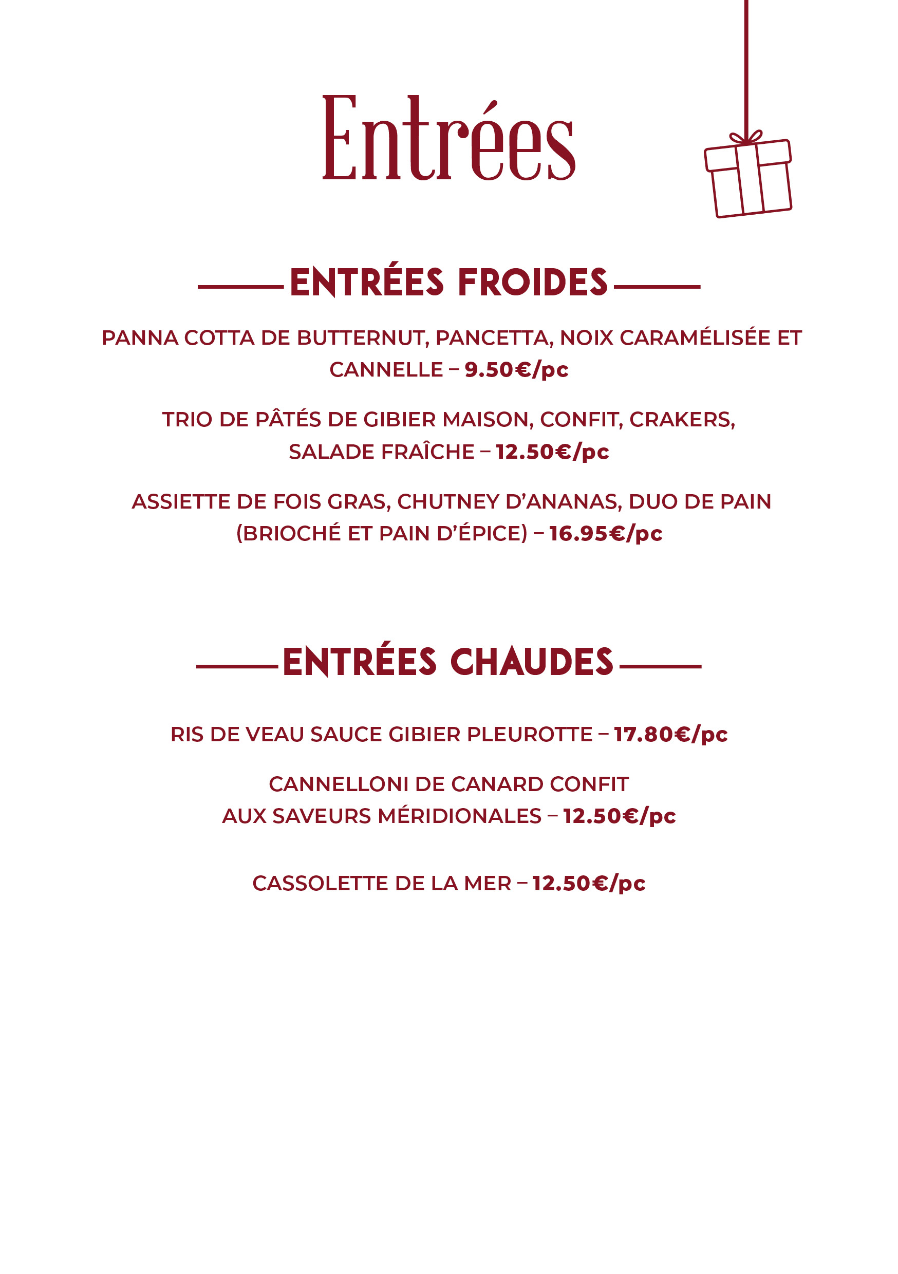 | Hachis parmentier nature/épinards | 14.50€/kg |