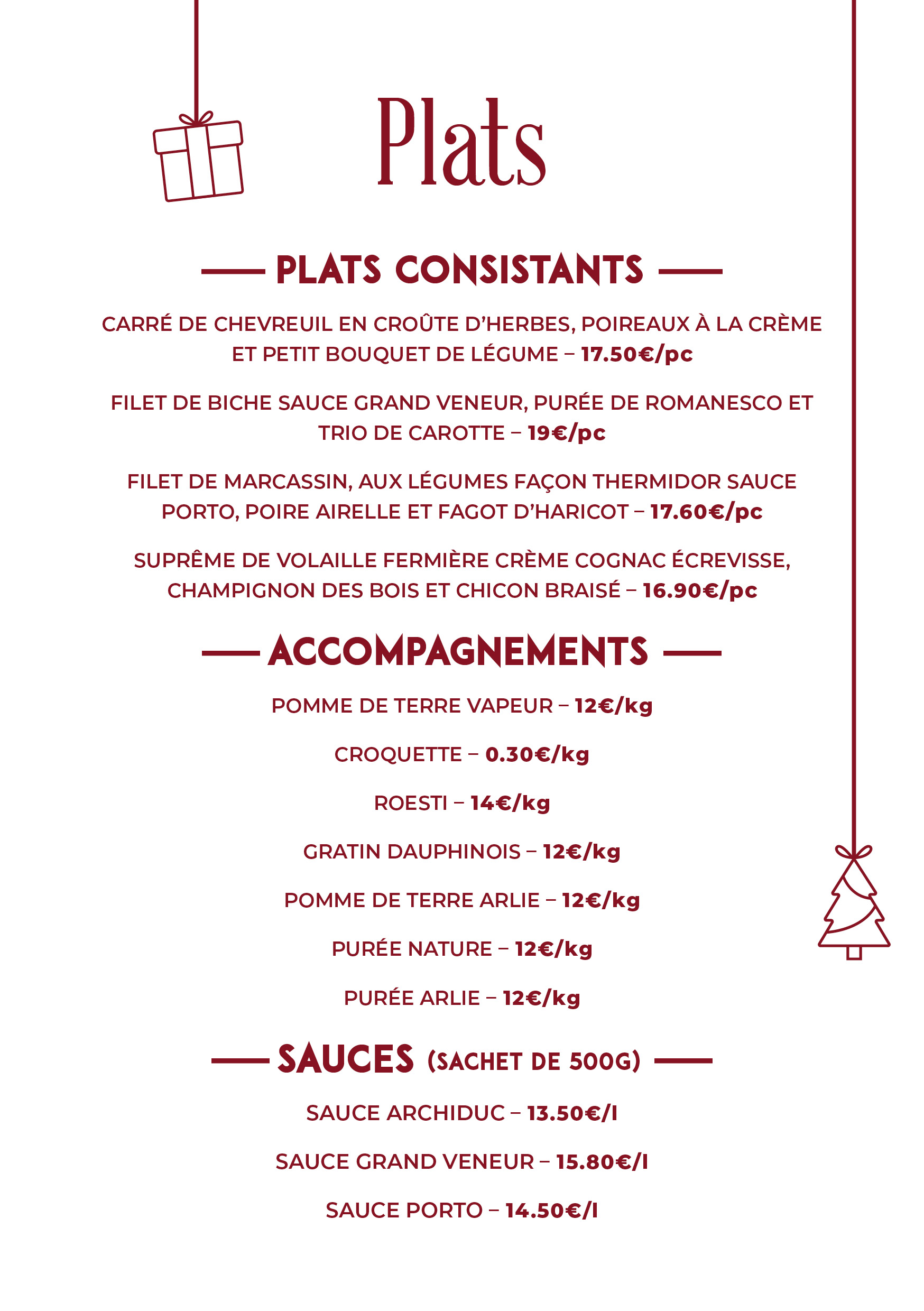 | Filet de porc sauce gibier | 15.75€/kg |